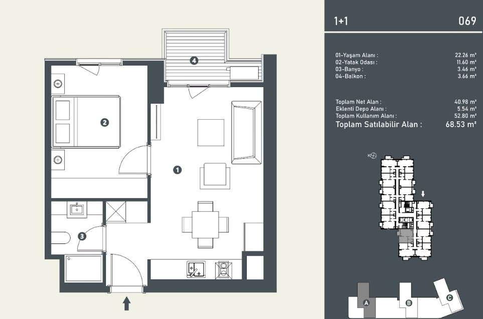 - Total Rooms: 1+1, 2+1, 3+1, 4+1